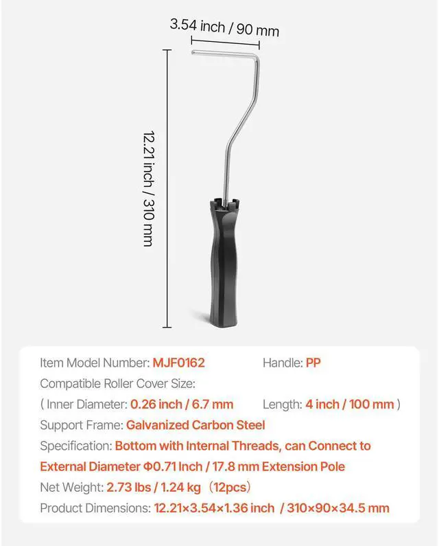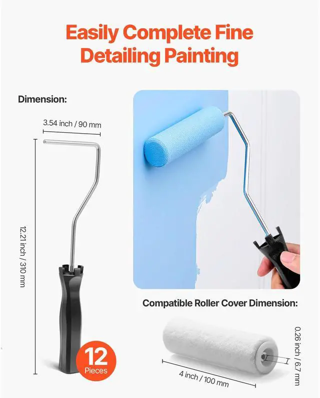 Compatible Roller Cover Size: 0.26 inch / 6.7 mm (Inner Diameter)