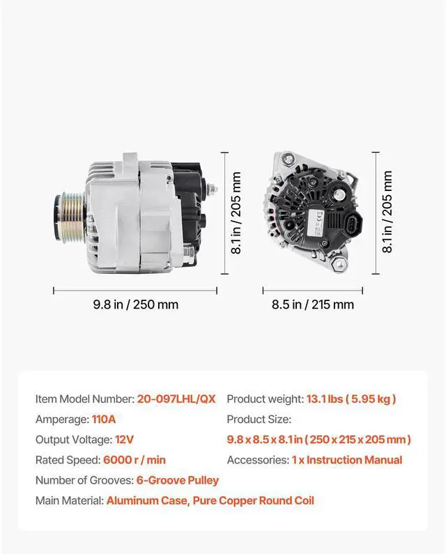 Item Model Number: 20-097LHL/QX,Product Weight: 13.1 lbs/5.95 kg,Product Dimensions: 9.8 x 8.5 x 8.1 in/250 x 215 x 205 mm,Main Material: Aluminum Housing, Pure Copper Round Coil