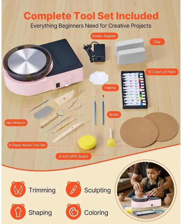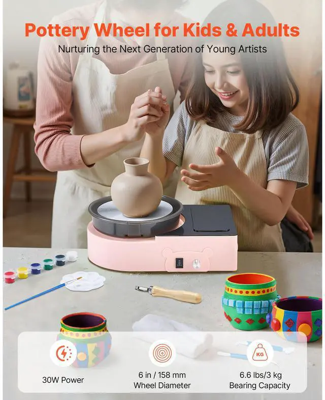 VEVOR Mini Pottery Wheel Electric Clay Wheel for Kids and Adults 6 inch Pink
