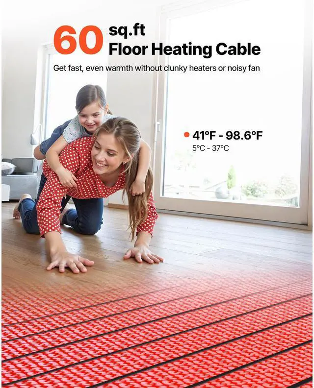• VEVOR 60 sqft Floor Heating Mat 120V Radiant Heated System with Alarm