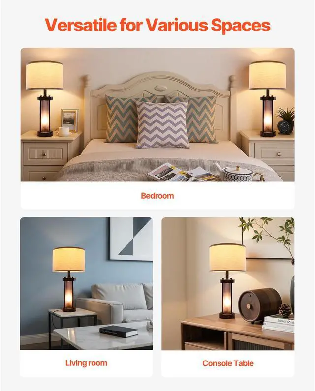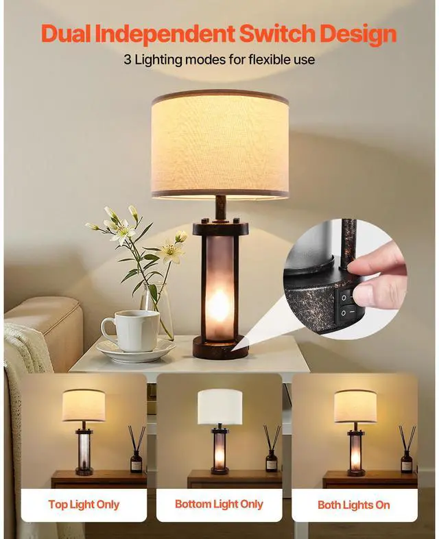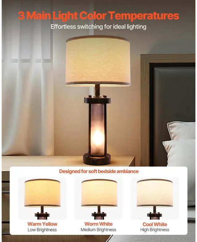 Table Lamps Set of 2 Farmhouse Bedside Nightstand Lamps with USB Ports