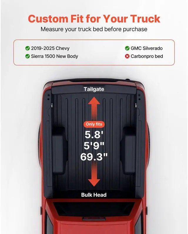Soft Roll-Up Truck Bed Tonneau Cover 5.8ft for 19-25 Silverado/Sierra 1500