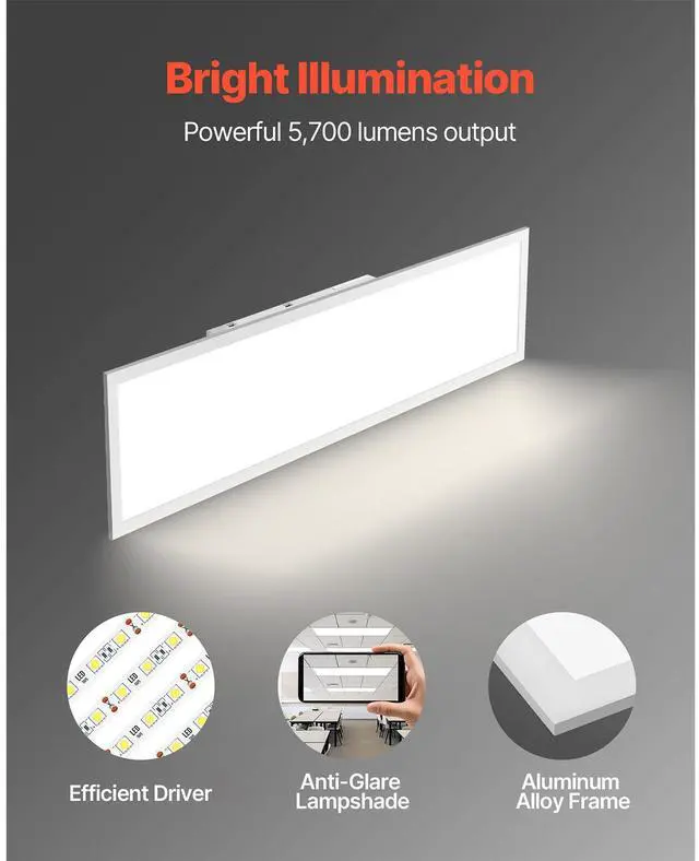 1x4 FT LED Flat Panel Light 5700LM Ceiling Light Fixture 3000K/4000K/5000K 2 PCS
