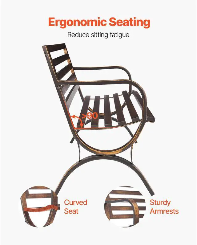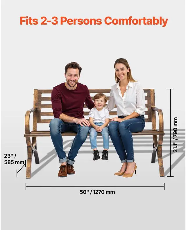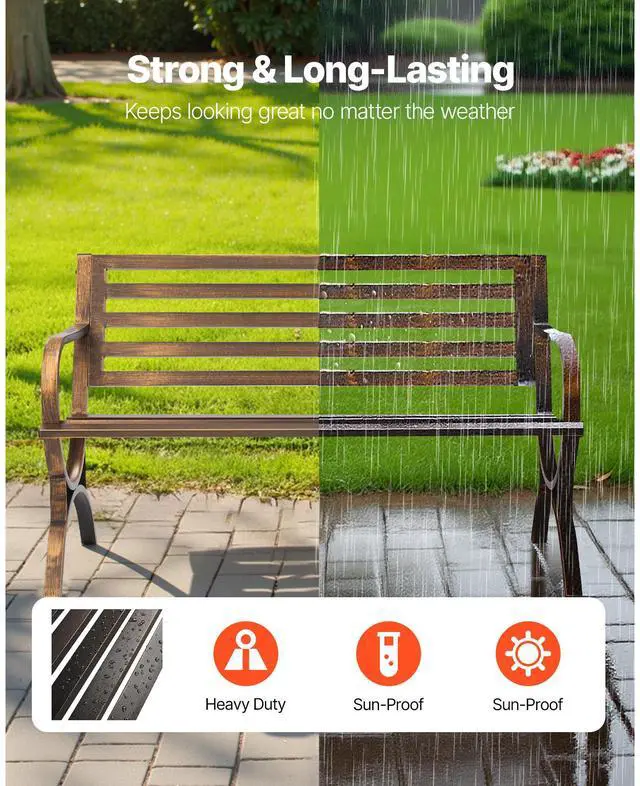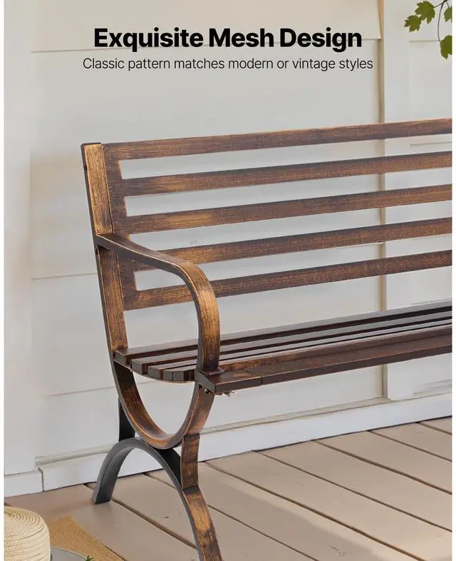 VEVOR Outdoor Bench Patio Bench 50 inch Metal Frame Slatted Backrest for Porch