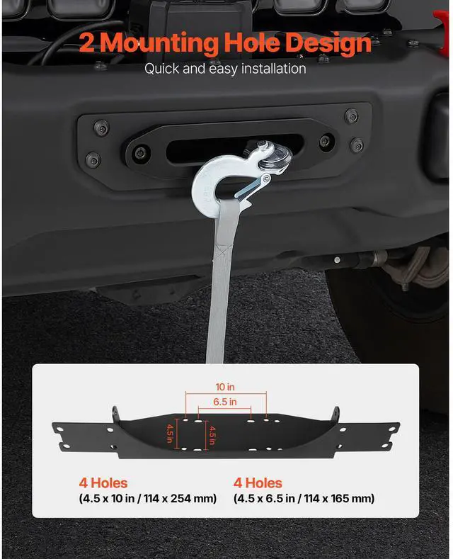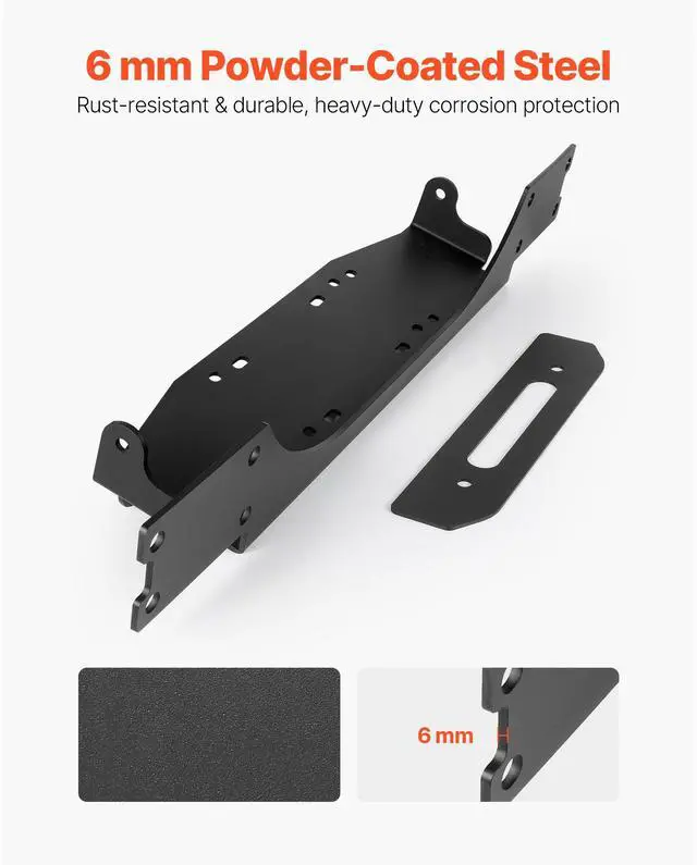Thickness: 0.236 in / 6 mm,Main Color: Black,Winch Bolt Hole Sizes:,Item Model Number: 1911,Surface Treatment: Powder Coating,Product Weight: 18.63 lbs / 8.45 kg,Material: Q235,Compatible Winch Capacity: 12000 lbs / 5443 kg,4 Holes: 4.5 x 6.5 in / 114 x 165 mm,Product Max Size: 37.01 x 6.69 x 7.09 in / 940 x 170 x 180 mm