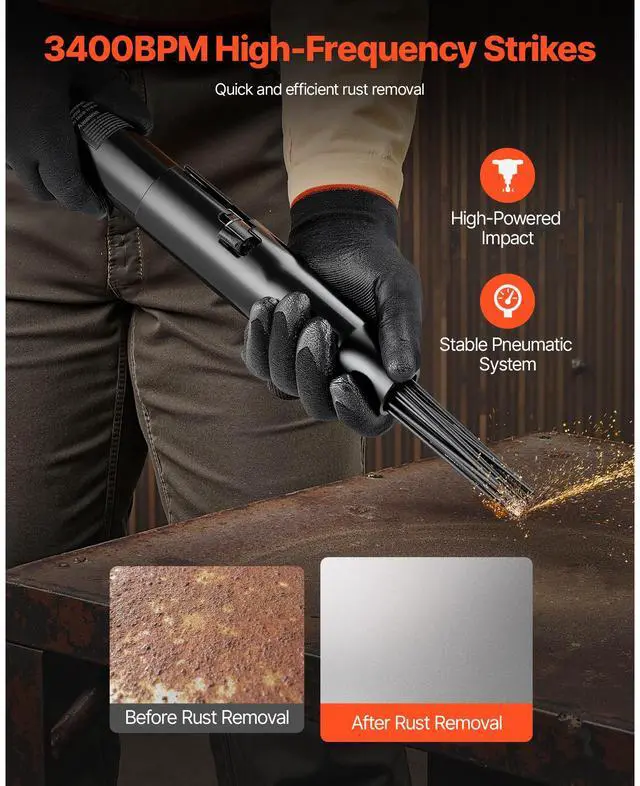 VEVOR Air Needle Scaler 3400BPM Pneumatic Needle Scaler for Rust Paint Removal
