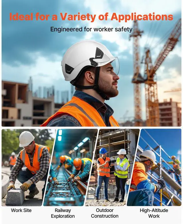 Industrial Safety Helmet with Visor and 6-Point Ratchet Suspension Hard Hat