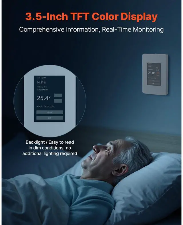 7 Day Programmable Thermostat for Underfloor Heating Pump TFT Display