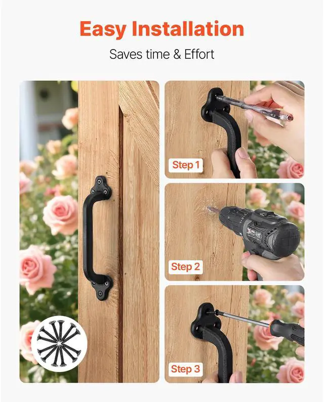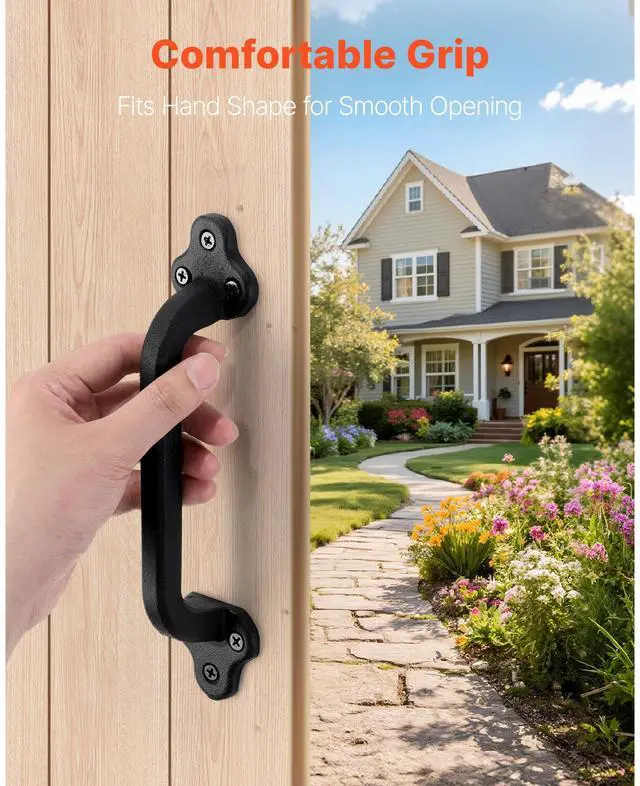2Pcs Barn Door Handles 9 in Rustic Heavy Duty Carbon Steel Garden Gate Pulls