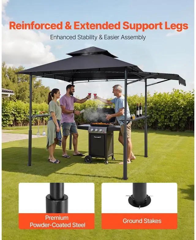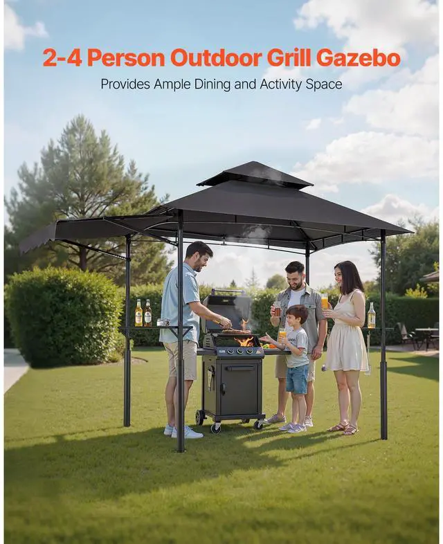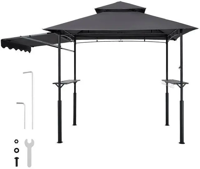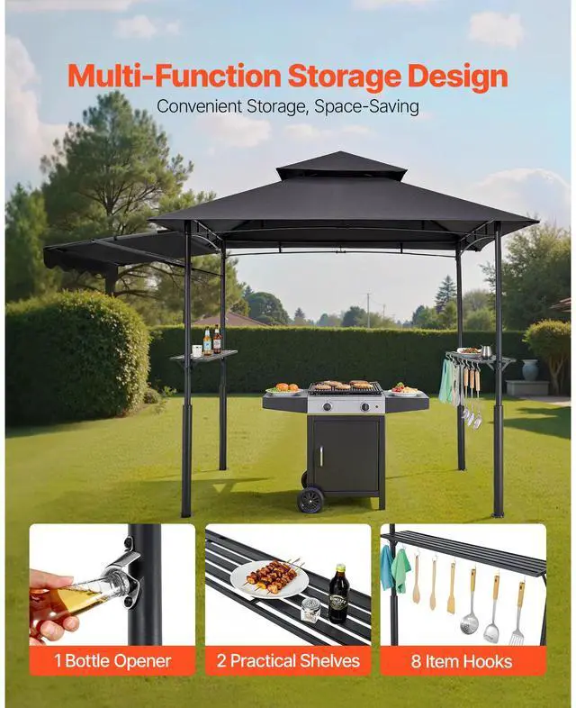 8'x5' Reinforced BBQ Grill Gazebo Canopy with Shelf & Awning Double-Tiered Top