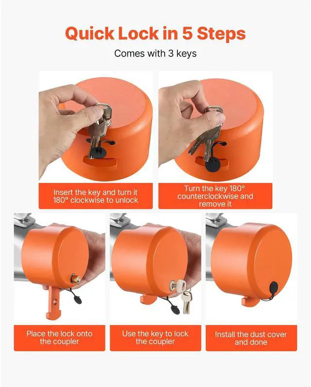 VEVOR Trailer Coupler Lock Fits 1-7/8 & 2 & 2-5/16-Inch Couplers RV Trailer Lock