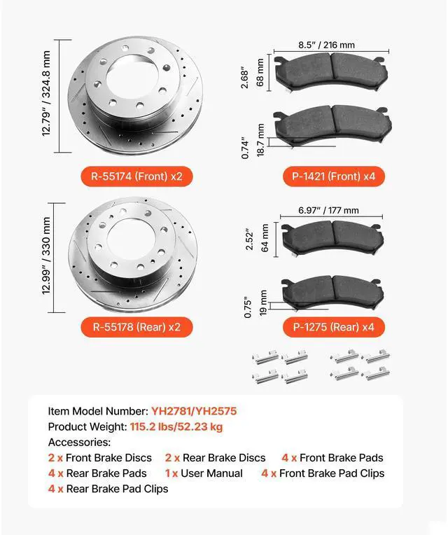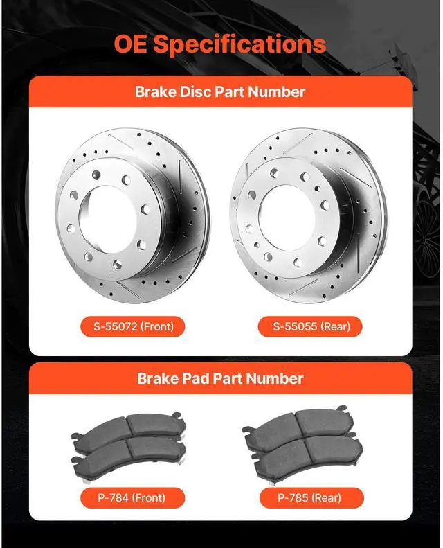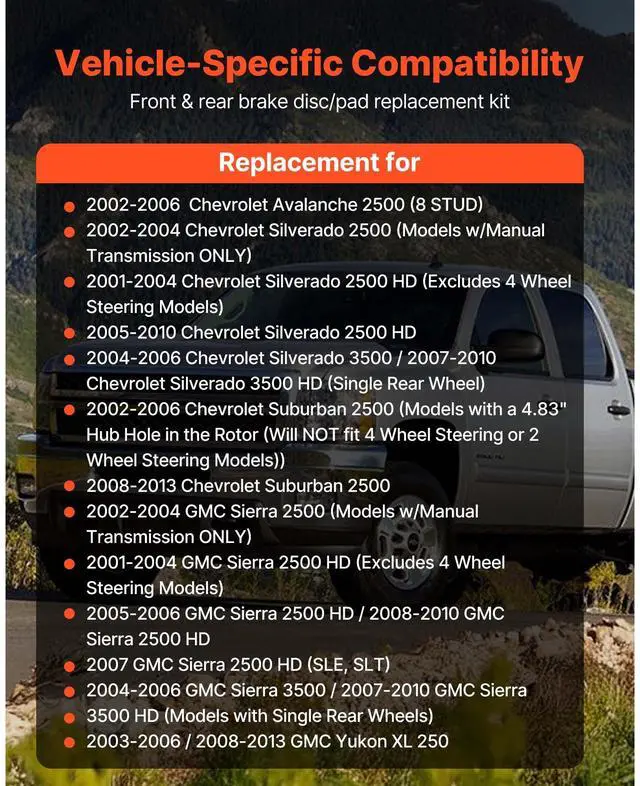 Front and Rear Brake Rotors Kit for 2002-2006 Chevrolet Avalanche 2500 (8 STUD)