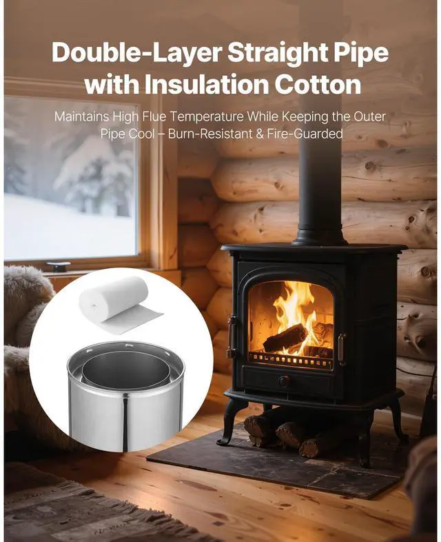 6 x 12 Inch Insulated Chimney Pipe Double Wall Stainless Steel Stove Pipe