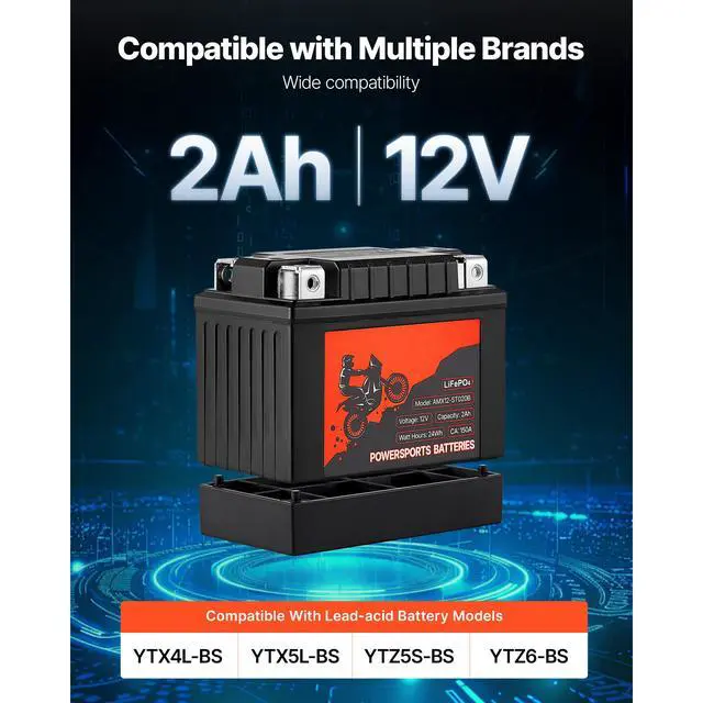 Cranking Amps (CA): 150CA,Battery Capacity: 2Ah,Battery Voltage: 12V,Starting Current Type: Standard Temperature Start,Item Model Number: AMX12-ST020B,Cold Cranking Amps (CCA): 70CCA,Product Dimensions: 4.45 x 2.76 x 3.35 in / 113 x 70 x 85 mm,Battery Type: Lithium Iron Phosphate,Net Weight: 1.23 lbs / 0.56 kg