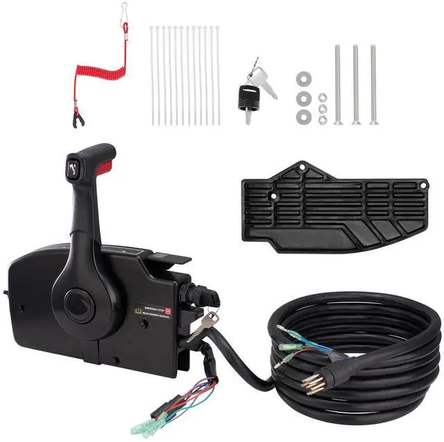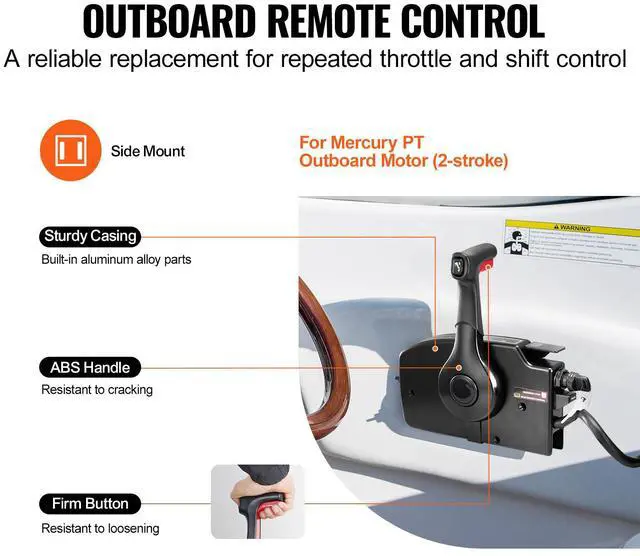 VEVOR Boat Throttle Control, 881170A15 Side-Mounted Outboard Remote Control Box for Mercury PT 2-Stroke, Marine Throttle Control Box with Power Trim Switch, 16.3 ft Harness 8+4 Pin, and Lanyard