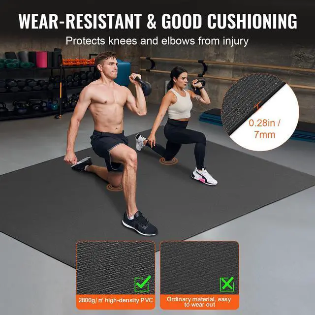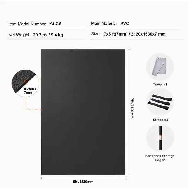 VEVOR Exercise Mat, Non Slip High Density Premium Yoga Mat, Exercise Yoga Mat for Men & Women, Fitness & Exercise Mat with Bag & Carry Strap, for All Types of Home Yoga, Pilate & Floor Workout (7x5ft)