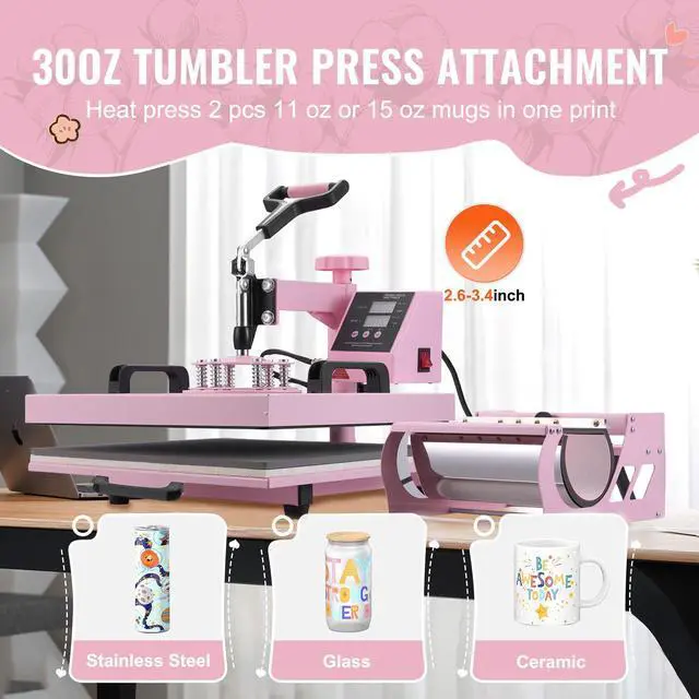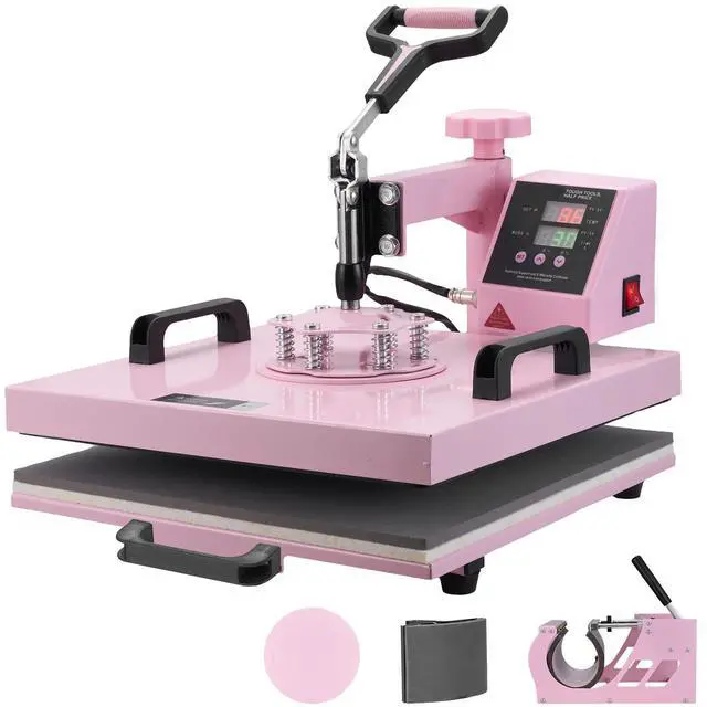 • VEVOR Heat Press Machine 15x15 in 5 in 1 with 30oz Tumbler Press T-Shirts Pink