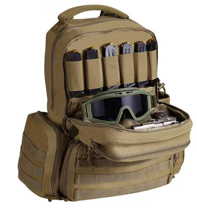 Magazine Capacity: 10 Magazines,Strap Type: Dual Shoulder,Pistol Capacity: 6 Pistols,Color: Brown,Storage Management: 6 Gun Pockets, 9.8 × 7.7 × 0.8 in (25 × 19.5 × 2 cm),Product Model: BK-2558,Material: 600D Polyester,Product Dimensions: 16.5 × 9.1 × 18.9 in (42 × 23 × 48 cm),Strap Size: 16.5 × 1 in (42 × 2.5 cm),Net Weight: 4.6 lbs (2.1 kg)