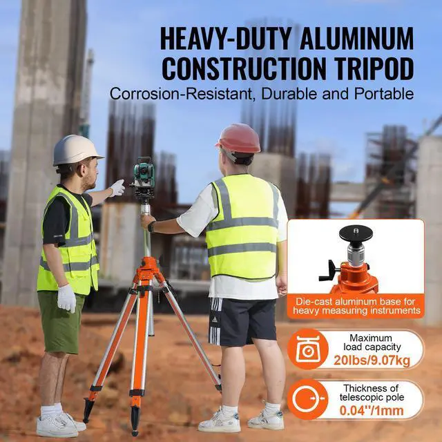 VEVOR Laser Level Tripod Stand 5/8"-11 Thread 45.07-114.37 in Height Adjustment