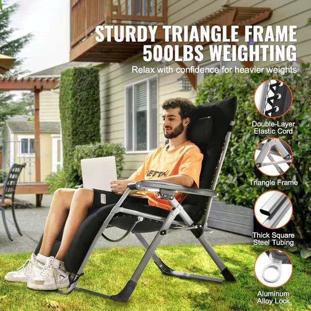 VEVOR Zero Gravity Chair 33" Zero Gravity Recliner Lounge Chair Indoor & Outdoor