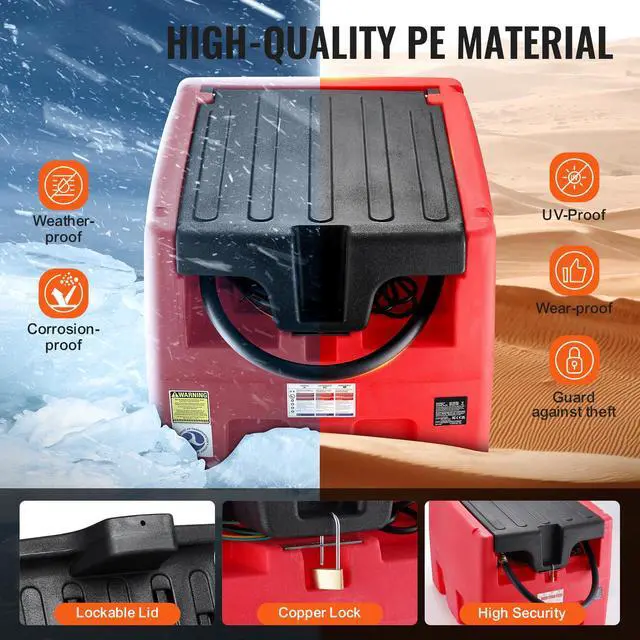 Power Cord Length: 13.1 ft/4 m,Hose Length: 13.1 ft/4 m,Capacity: 48 Gallons/182L,Color: Red,Applicable Fuel Type: Diesel & Gasoline,Item Model Number: YDIES 200L-G,Transfer Flow Rate: 10.6 GPM,Product Weight: 55.6 lbs/25.2 kg,Transfer Pump Voltage: 12V DC,Product Size: 31.5 x 24.8 x 23 in/800 x 630 x 585 mm