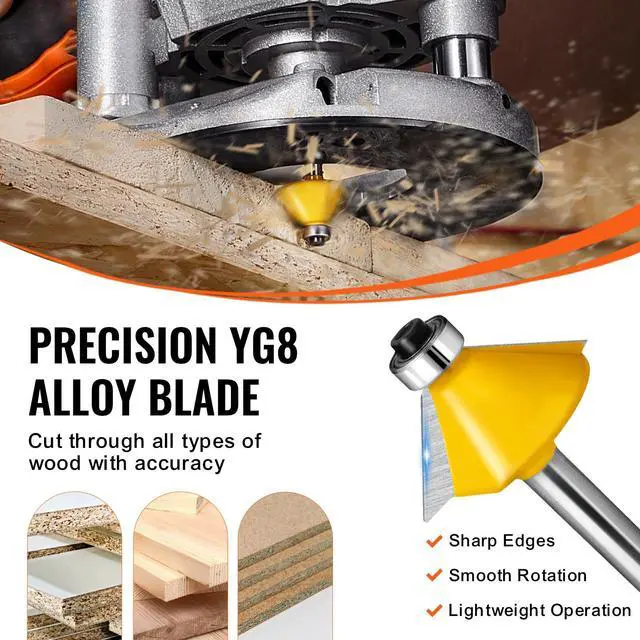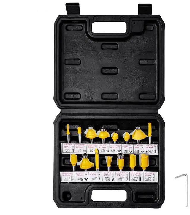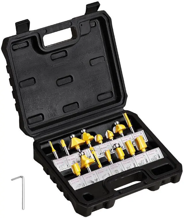 VEVOR Router Bits Set 15 Pieces Carbide Router Bit 1/4 Inch Shank Carrying Case
