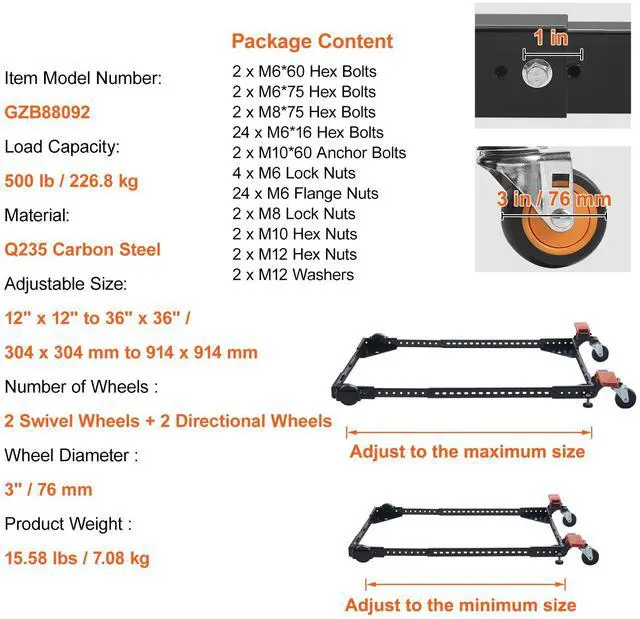 Adjustable Size: 12" x 12" to 36" x 36" / 304 x 304 mm to 914 x 914 mm