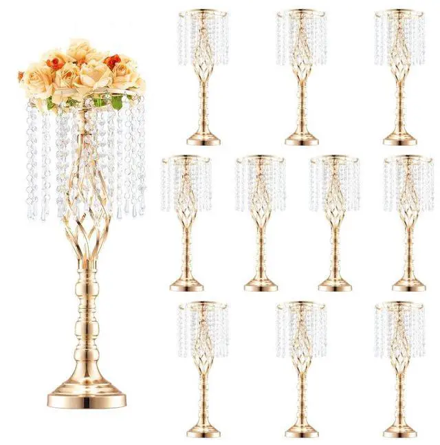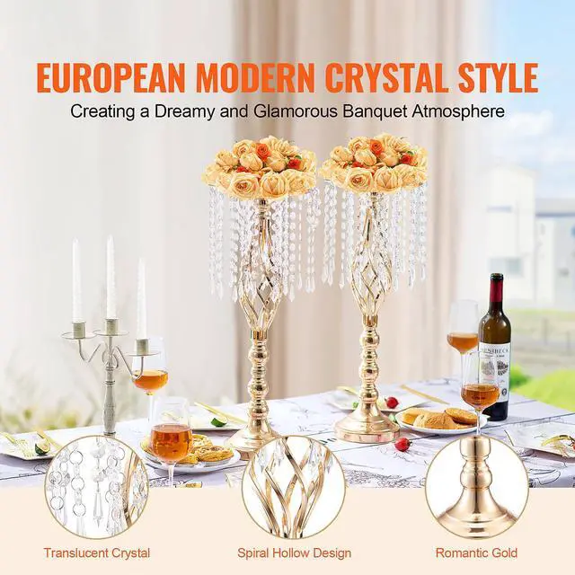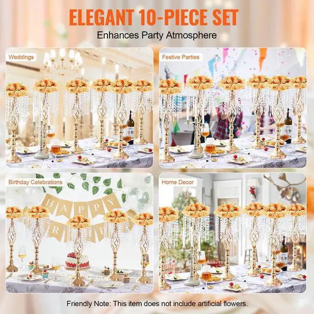 VEVOR 10PCS 55cm/21.65 Tall Crystal Wedding Flower Stand Vase for Party Decor