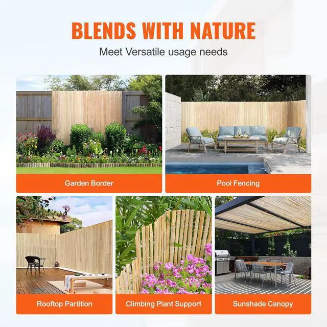 • VEVOR Natural Bamboo Slat Screening Privacy Bamboo Slat Fence 6 ft H x 16 ft L
