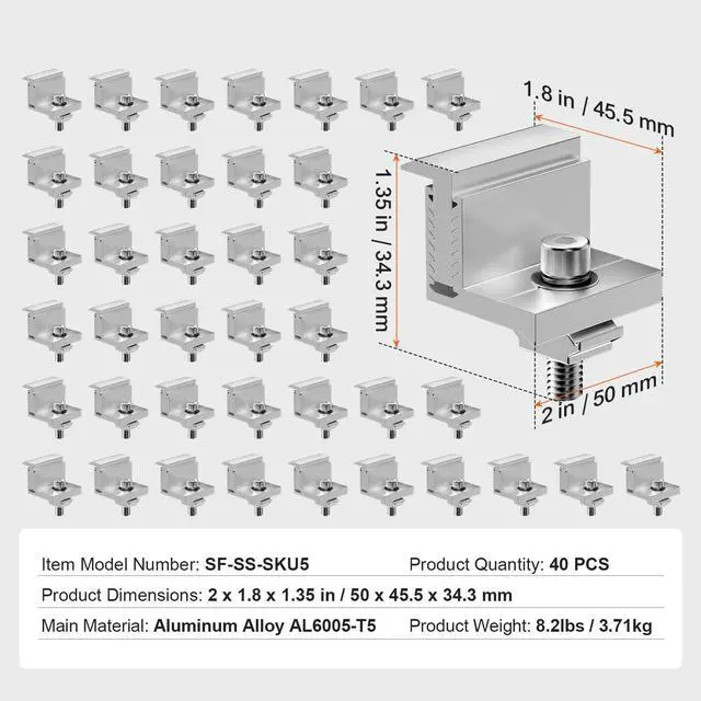 VEVOR Solar Panel Z Mounting Bracket 35-50mm Adjustable Bracket End Clamps 40PCS
