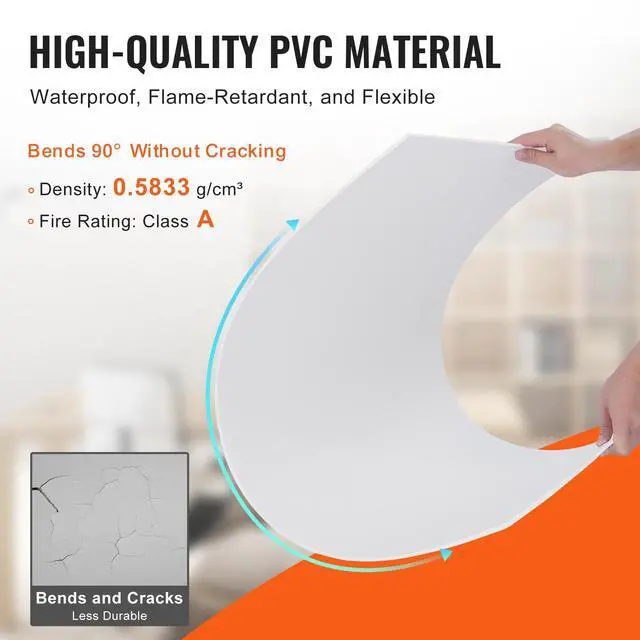 • VEVOR 12-Pack 24 x 24 in Drop Ceiling Tiles - Premium PVC Foam Sheet, Fire-Rated & Flexible, Easy Installation, Home/Office Decoration, Smooth White
