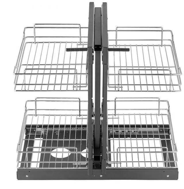 2 Tier 4 Shelf Blind Corner Pull Out Organizer Chrome Kitchen Cabinet Basket