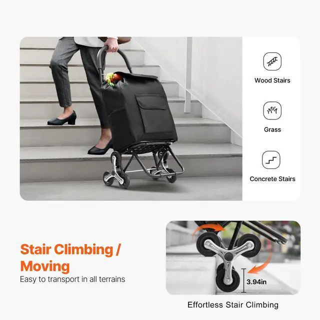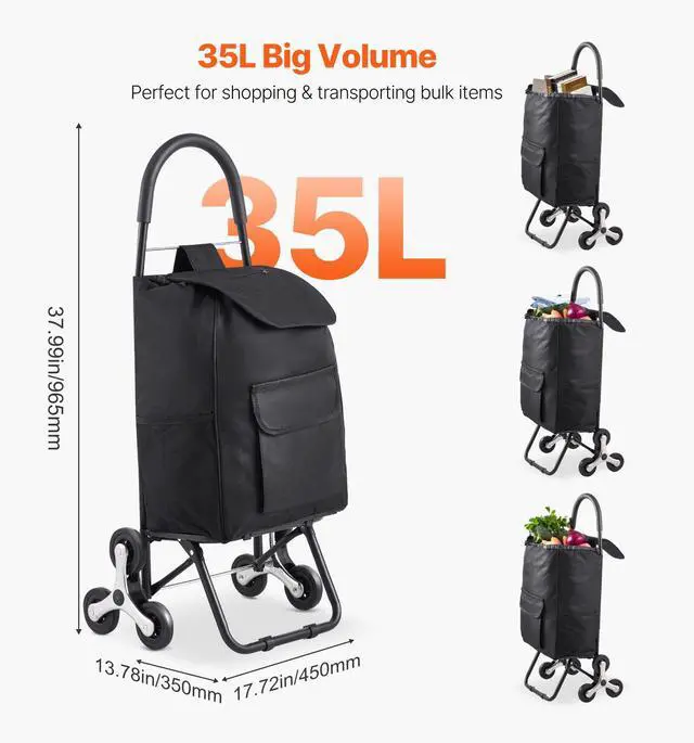 Stair Climbing Cart Foldable Shopping Cart 36L with Storage Bag 6 Wheels