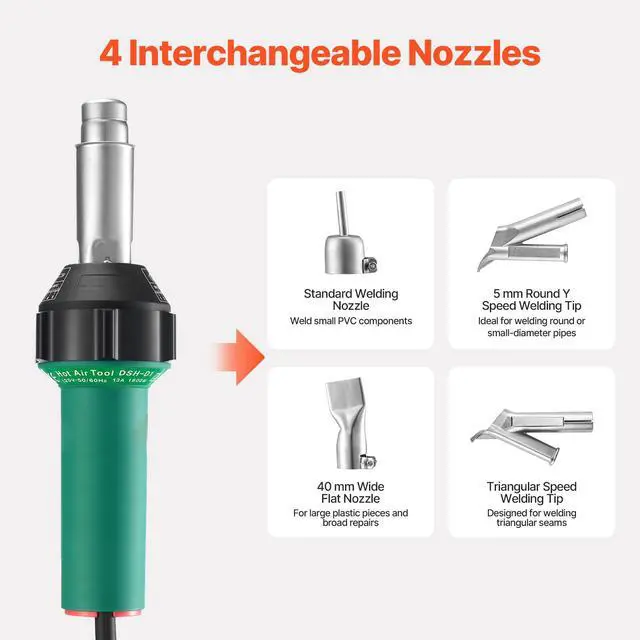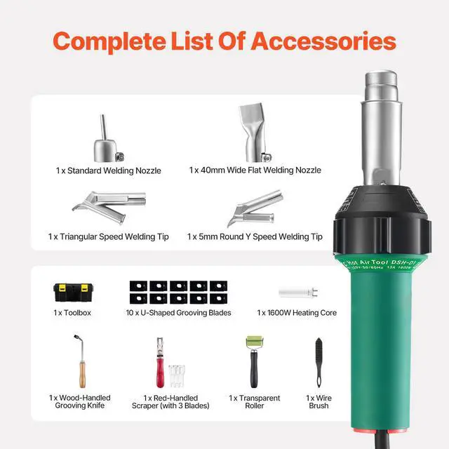 Hot Air Plastic Welder 1600W PVC TPO Vinyl Heat Gun Torch & 11 Accessories