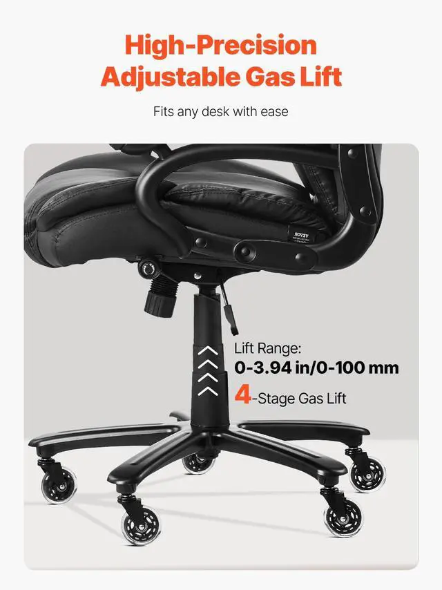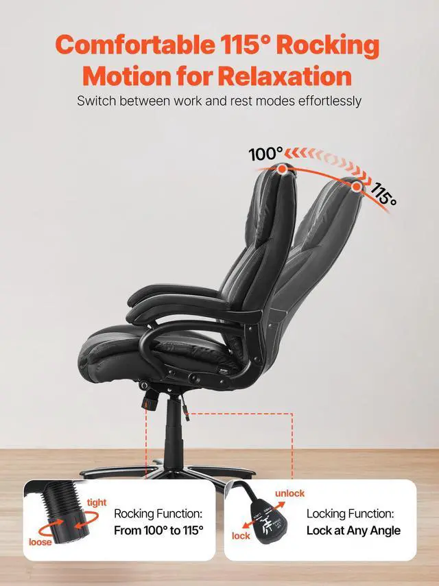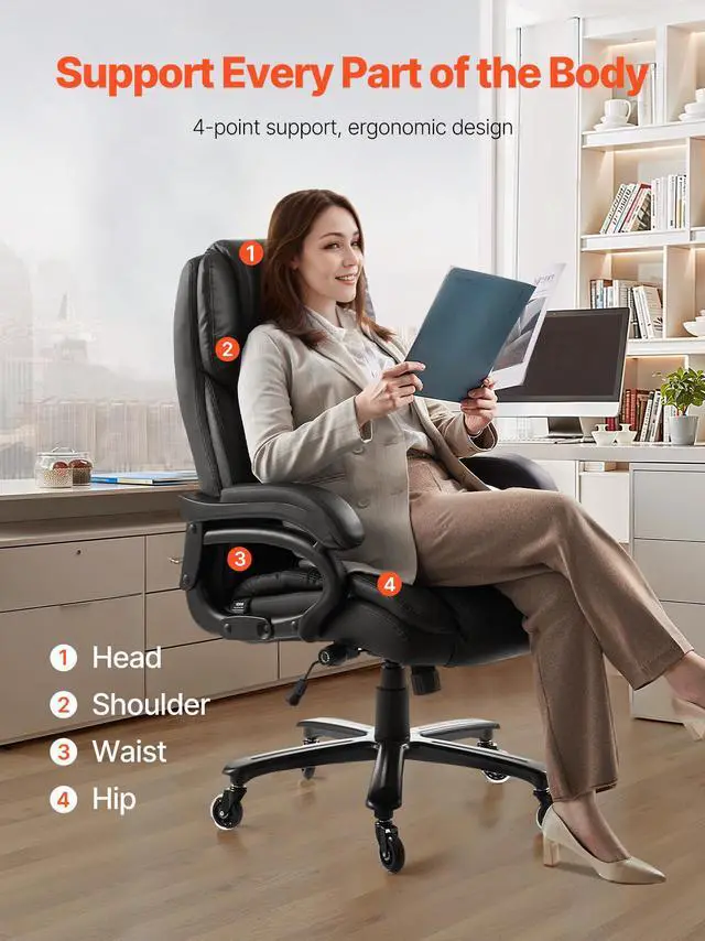 VEVOR Executive Office Chair, 500lbs Capacity with Adjustable Lumbar Support, High Back PU Leather Office Chair Ergonomic for Back Pain, Black