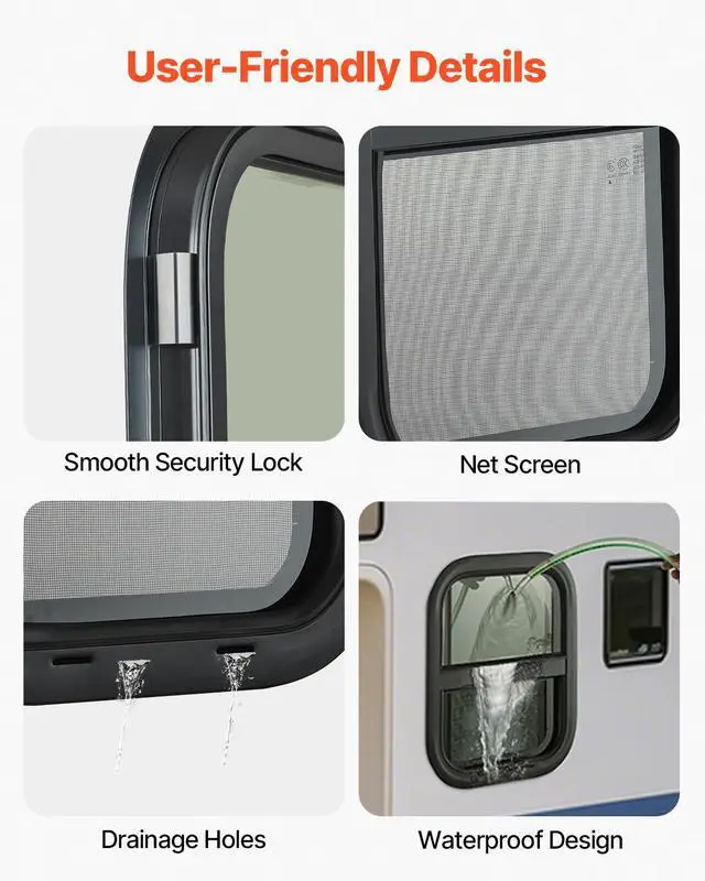 Vertical RV Window 14" W x 22" H Tinted Sliding RV Window & Net Screen Trim Ring