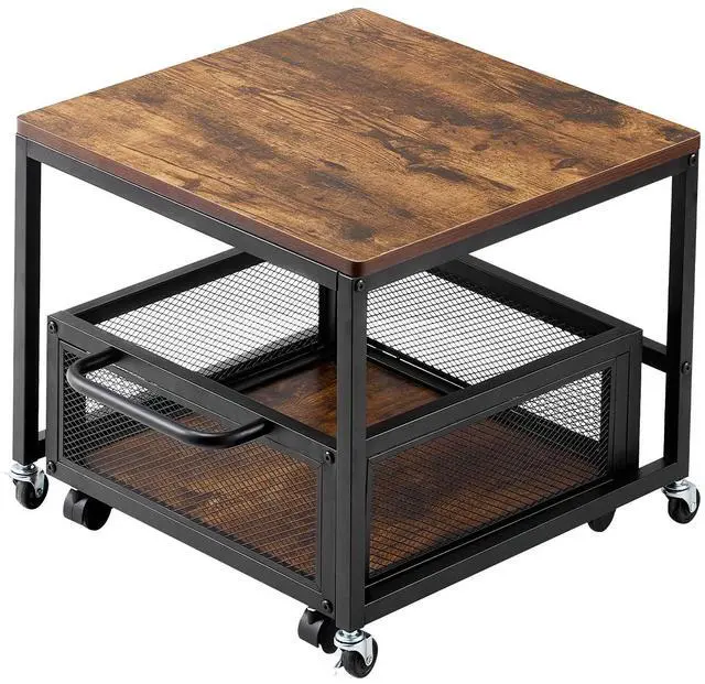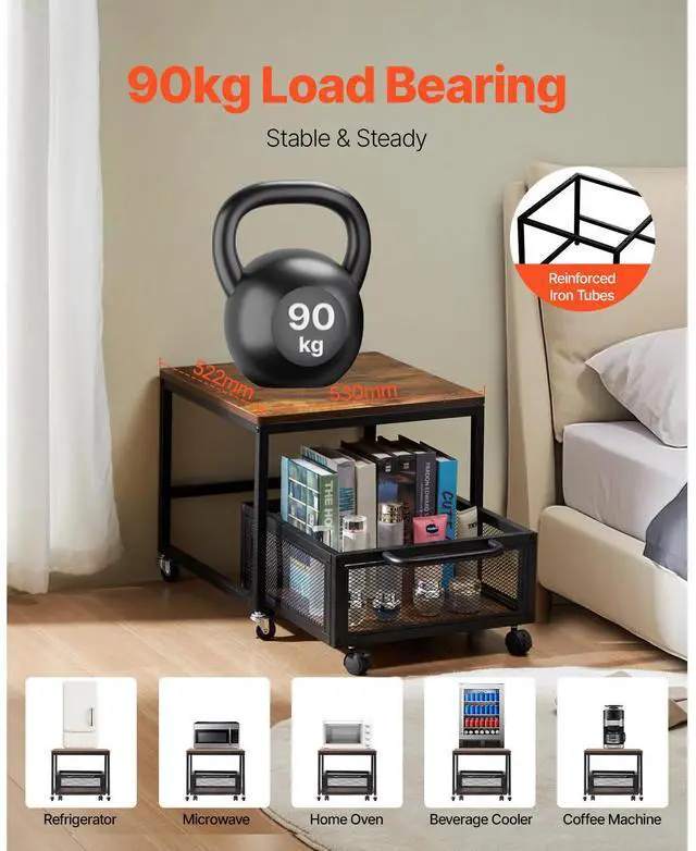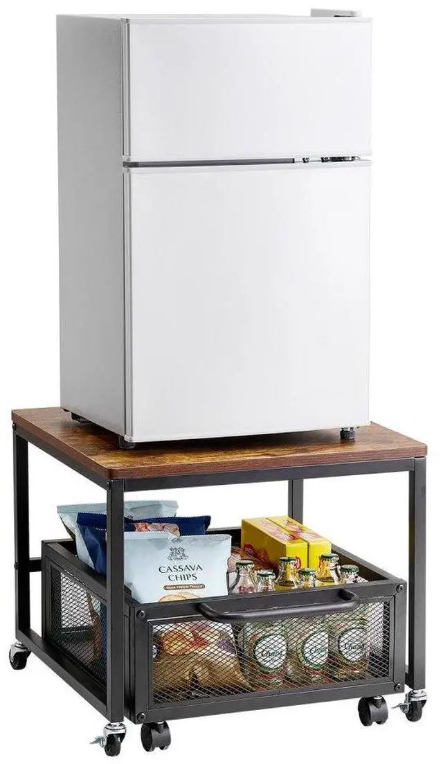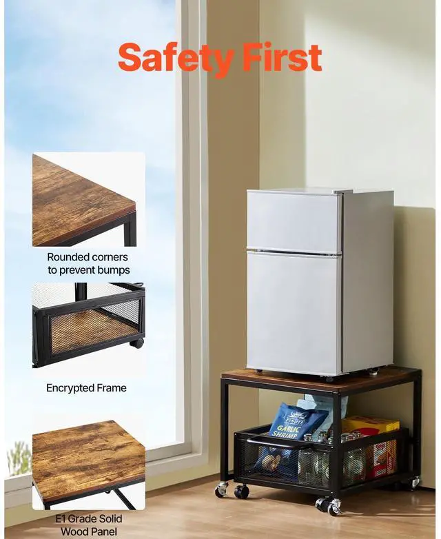 Mini Fridge Stand with Storage 198lbs Cart & Swivel Wheels Light Brown