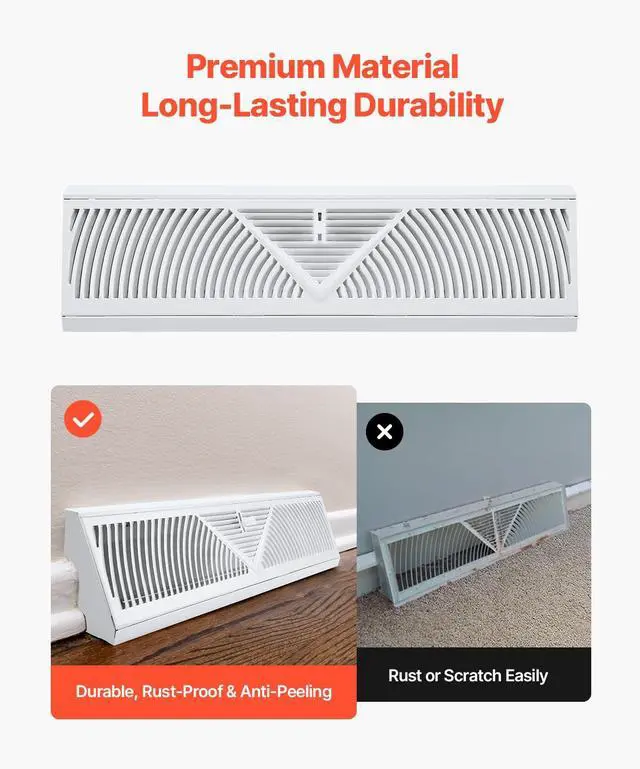 Floor Registers 18-Inch 10-Pack Floor Vents for HVAC Baseboard Registers White