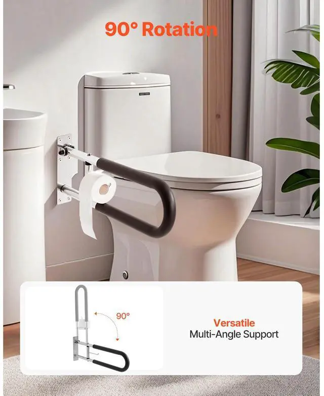 Folding Toilet Safety Rail 30 In 300 Lbs Capacity Transfer Bar with Paper Holder
