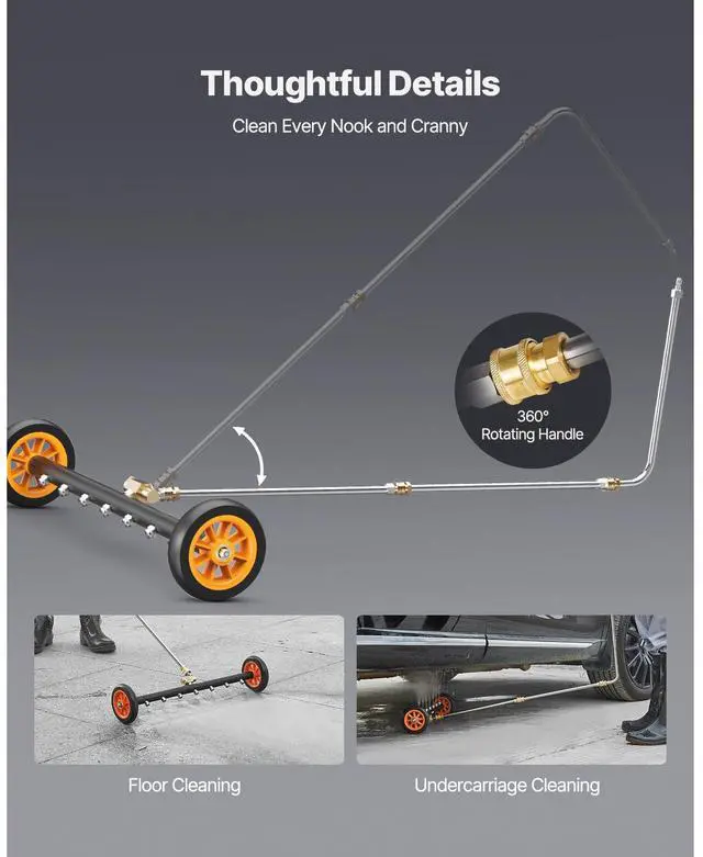 24" Pressure Washer Undercarriage Cleaner with 2 Wheels 2 Extended Wands
