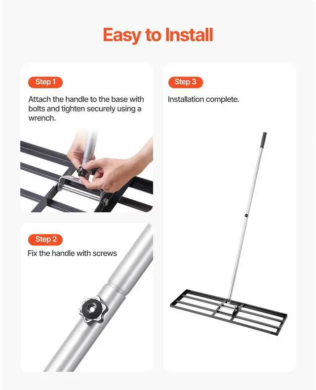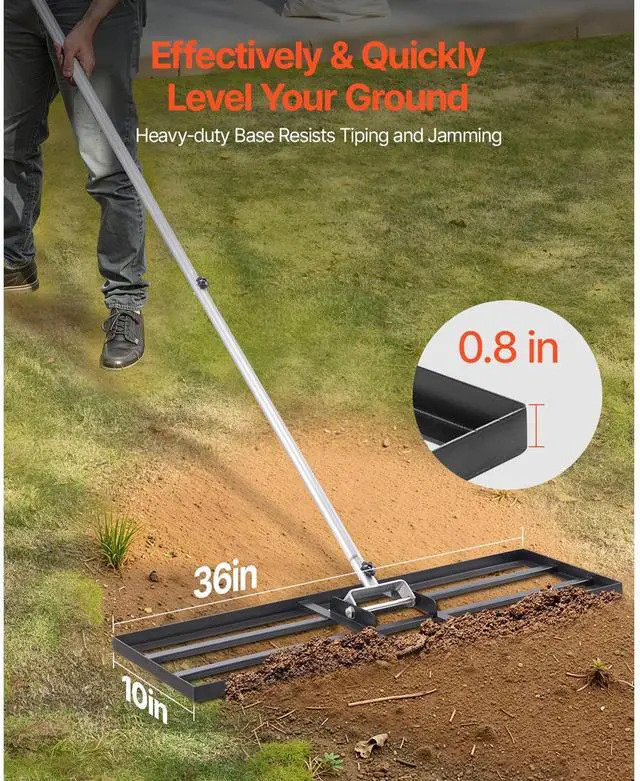 10x36in Lawn Leveling Rake Heavy Duty 83.9in Adjustable Handle for Yard & Garden