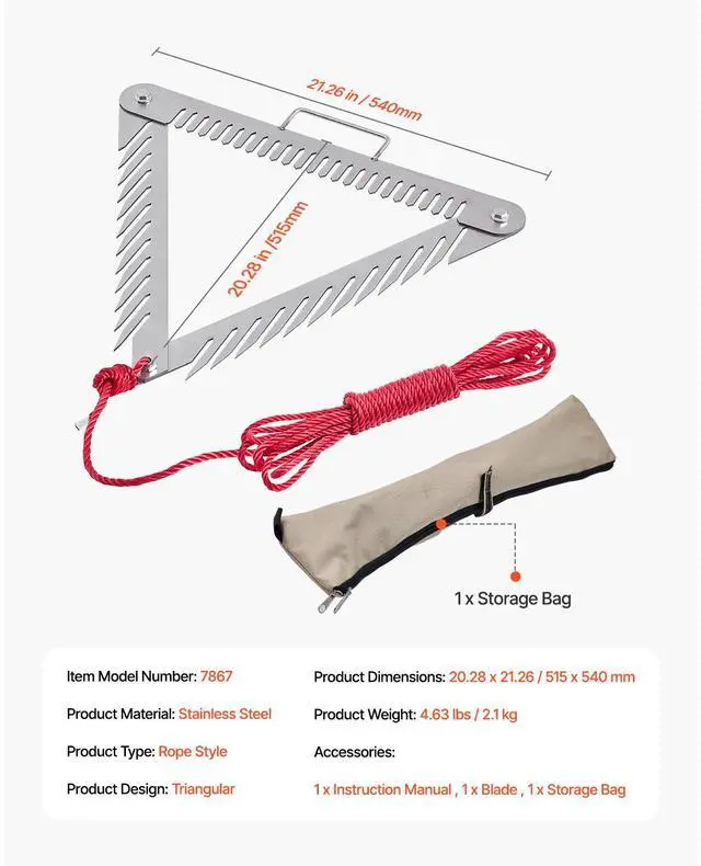 Design: Triangular,Product Type: Rope Style,Item Model Number: 7867,Product Weight: 4.63 lbs / 2.1 kg,Material: Stainless Steel,Product Dimensions: 20.28 x 21.26 x 0.35 in / 515 x 540 x 9 mm