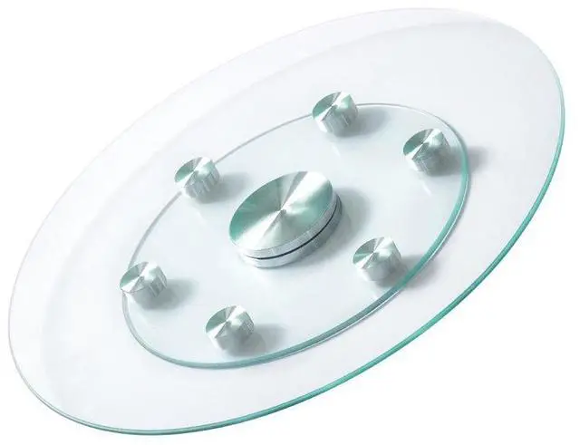 Auxiliary Wheels Thickness: 0.67 in / 17 mm,Aluminum Alloy Turntable Diameter: 4.53 in / 115 mm,Tempered Glass Base Thickness: 0.24 in / 6 mm,Aluminum Alloy Turntable Thickness: 0.94 in / 24 mm,Tempered Glass Base Diameter: 14.96 in / 380 mm,Auxiliary Wheels Diameter: 1.71 in / 43.5 mm,Tempered Glass Tabletop Diameter: 24.02 in / 610 mm,Product Size: 24.02 x 24.02 x 1.49 in / 610 x 610 x 37.8 mm,Load Capacity: 154.32 lbs / 70 kg,Item Model Number: SKU003,Product Weight: 13.89 lbs / 6.3 kg,Tempered Glass Tabletop Thickness: 0.24 in / 6 mm,Auxiliary Wheels Quantity: 6 PCS