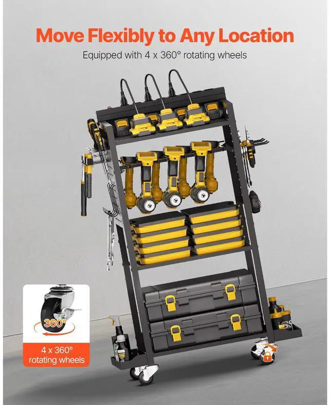 VEVOR 4-tier Tool Organizer Cart with Charging Station Garage Cart on Wheels