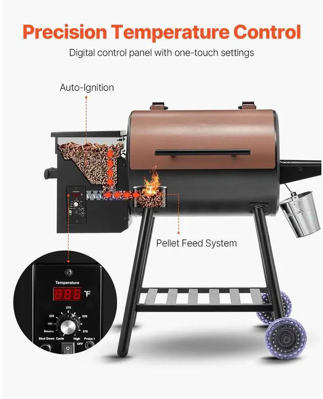 • Wood Pellet Grill Smoker Outdoor Electric BBQ Grills 456 Sq.in Cook Area