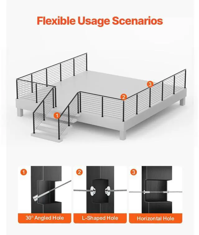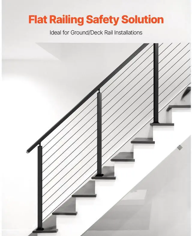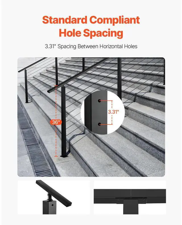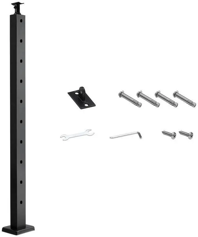 VEVOR Cable Railing Post, 36x1x2 Inch Stair Railing Post, with Pre-Drilled 30° Angled Holes, Stainless Steel Cable Rail Post with Horizontal and Curved Bracket, 1-Pack, Black, 1JZLGZXHS91402OS1001V0