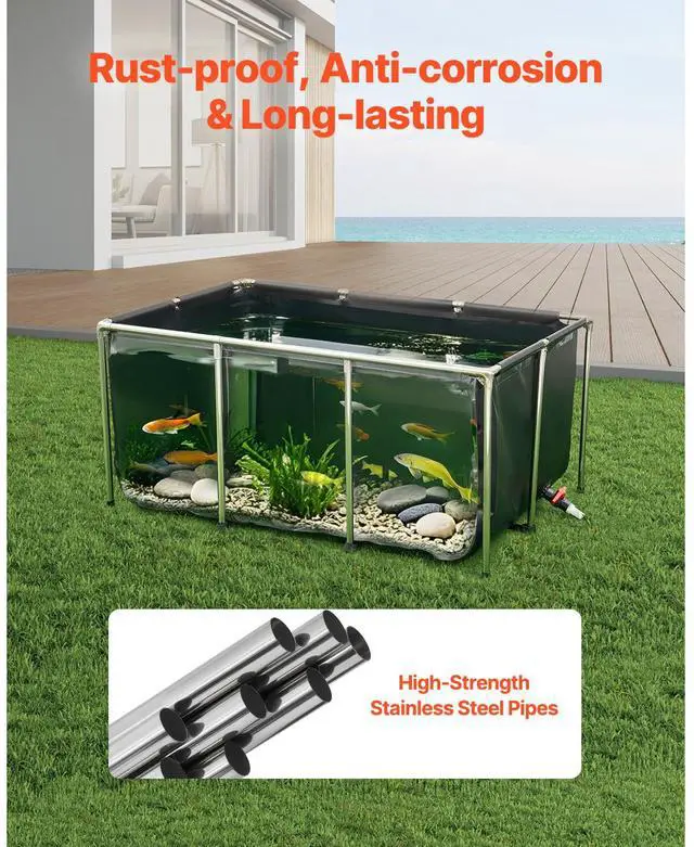 Canvas Fish Pond Above Ground Koi Tank 270 Gal with Clear Viewing Panel