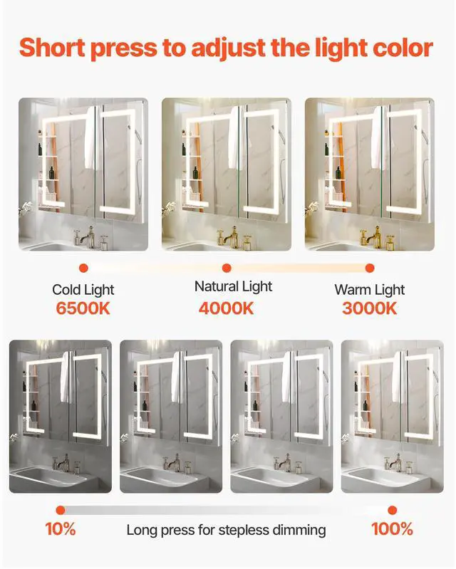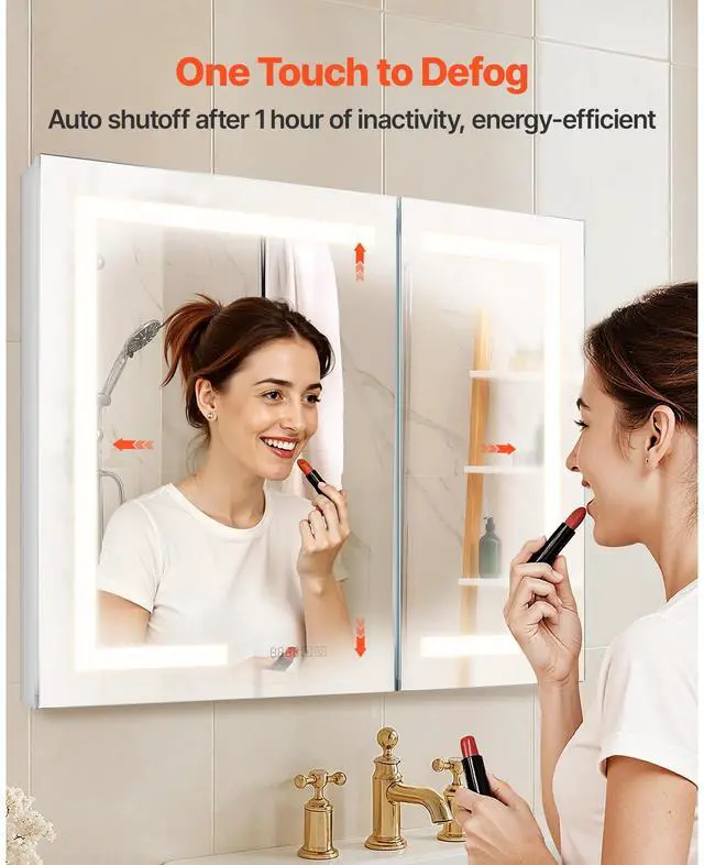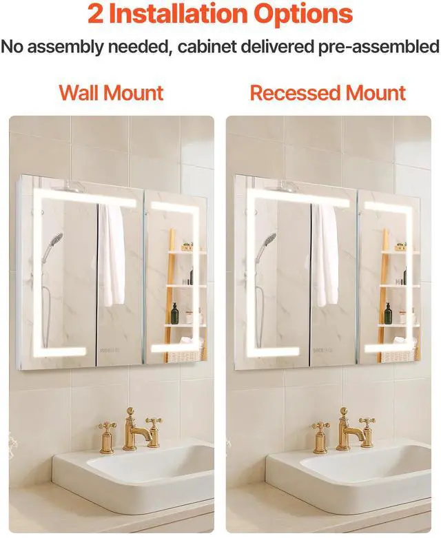 Lighted Medicine Cabinet 36 x 30" HD Tempered Glass Mirror Recessed Wall