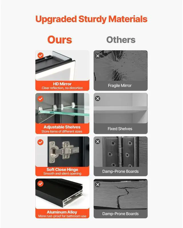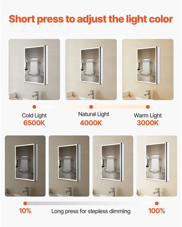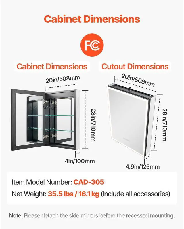 Lighted Mirror Medicine Cabinet 20x28" Sensor Light Recessed or Wall Mount