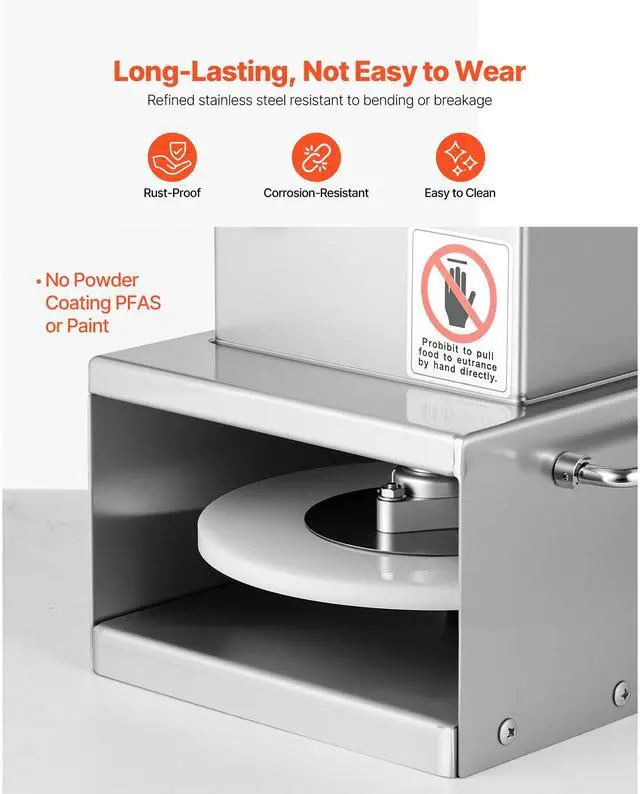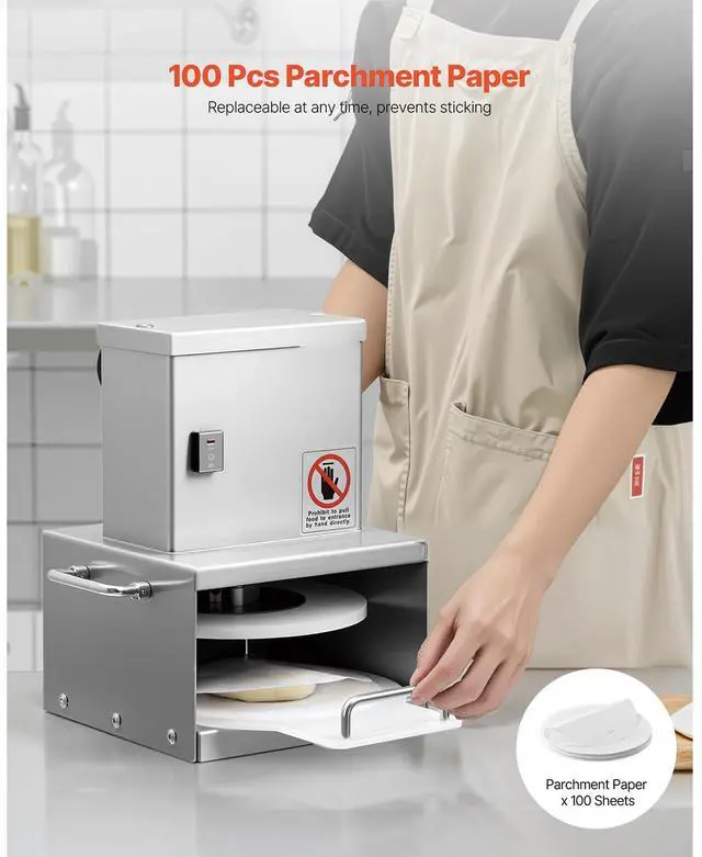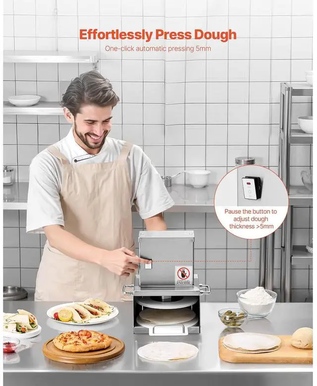 Pizza Dough Size: 6 inch,Dough Thickness: 5mm,Item Model Number: APD24-C,Thickness Adjustment: Electric Adjustment,Product Dimensions: 9.4 x 9.8 x 13 inch / 240 x 250 x 330 mm,Net Weight: 19.8 lbs / 9 kg,Power: 5W,Main Material: Stainless Steel